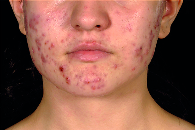 A common skin disease, occurs due to blockage of pores by the dead skin cells and excess oil from the skin. It is characterized by blackheads or whiteheads, pimples and possible scarring.Acne commonly occurs in adolescence and affects an estimated 80–90% of teenagers and becomes less common in adulthood. Acne and the resultant scars can lead to anxiety, reduced self-esteem and depression.Risk factors for the development of acne are genetics, hormonal as in polycystic ovarian disease, infections, diet, medications and stress.